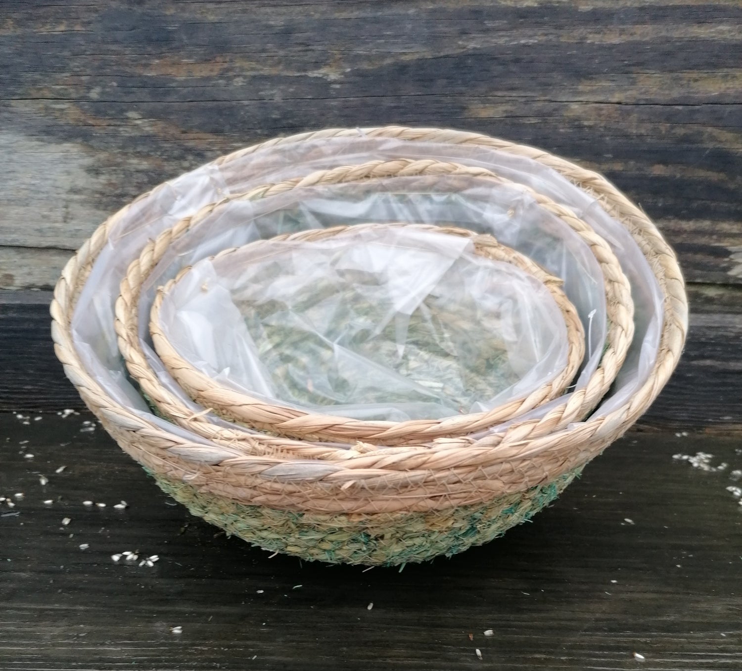 Neu !! 3er Set Pflanzschalen Durchmesser ca. 28 , 26 und 21 cm aus grünen Seegras - Naturprodukt