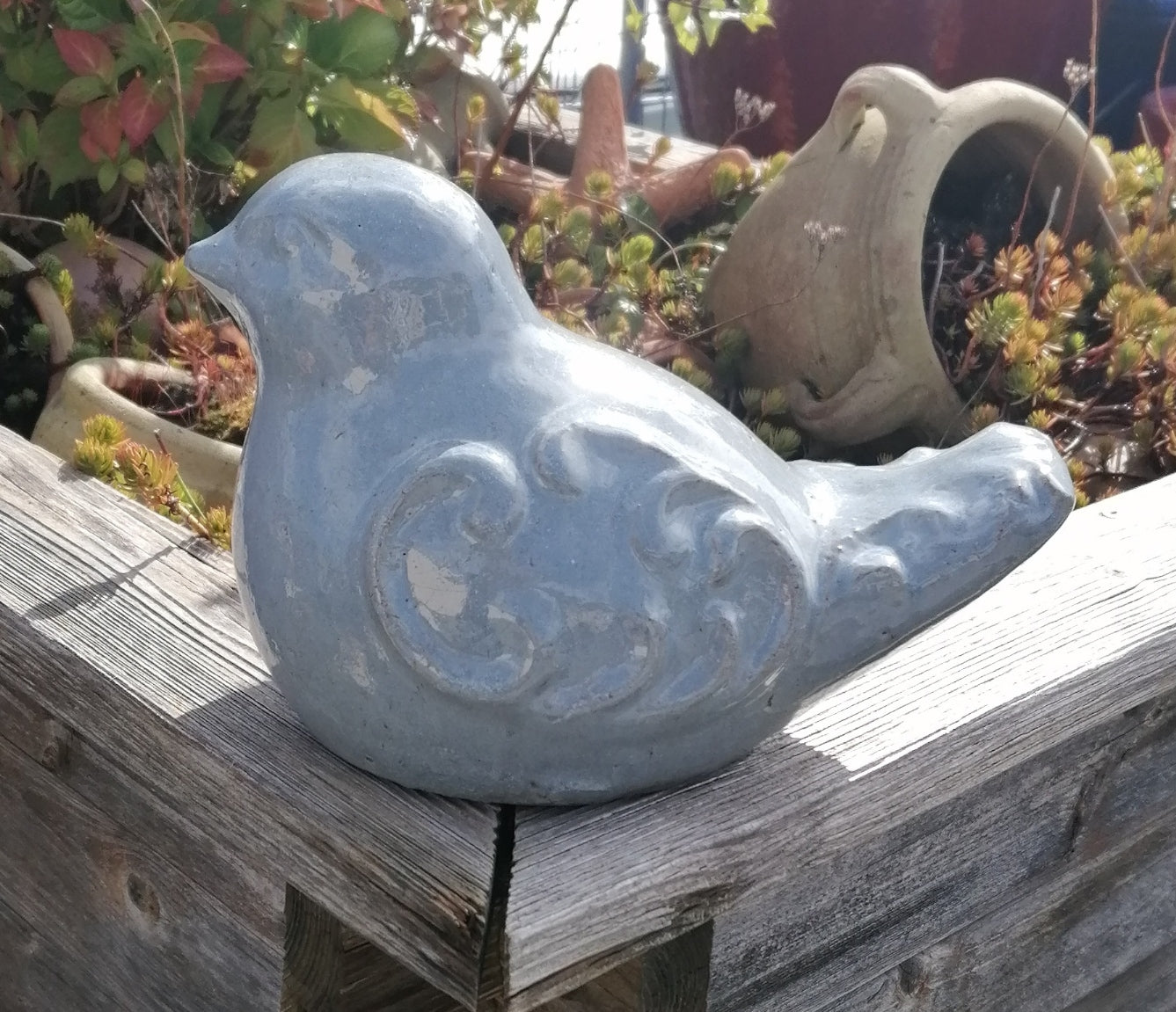 - 2. Wahl !! Vogel aus frostfesten Steinzeug blaugrau glasiert mit kleinen Schönheitsfehlern