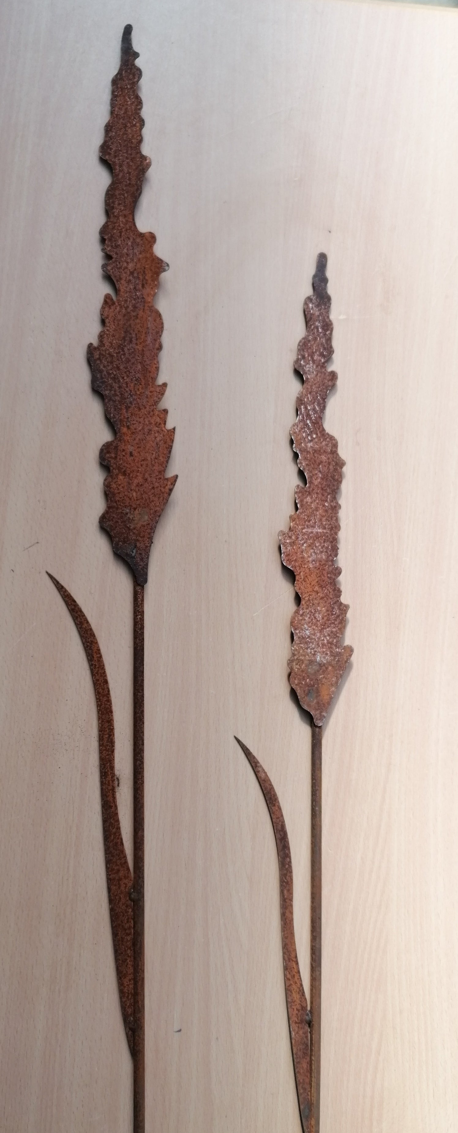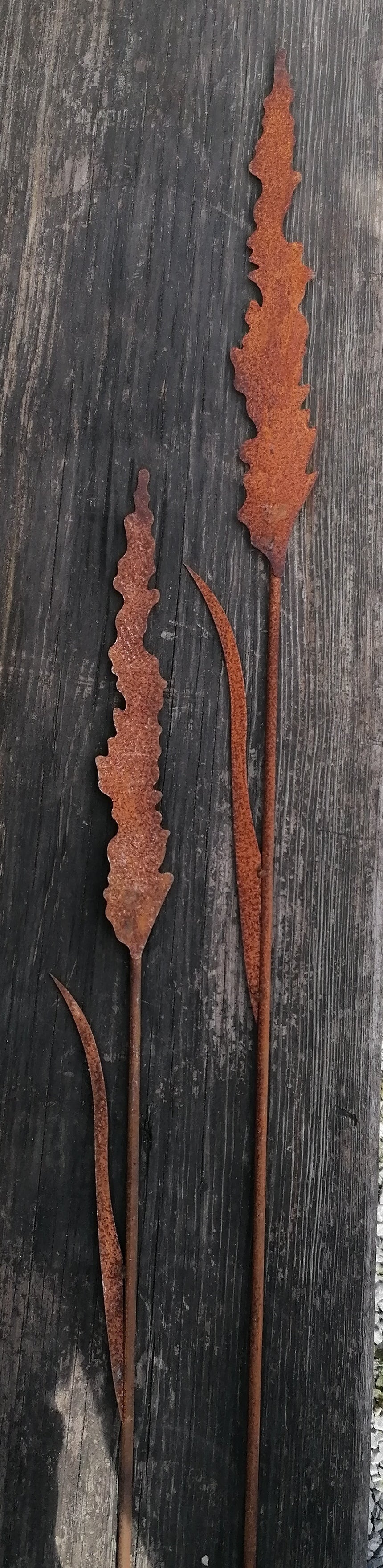 NEU !! 2er Set Gartenstecker Gras 106 + 76 cm lang aus Metall in Edelrost Stecker Dekoration Herbst Frühling Kräuter Rankhilfe
