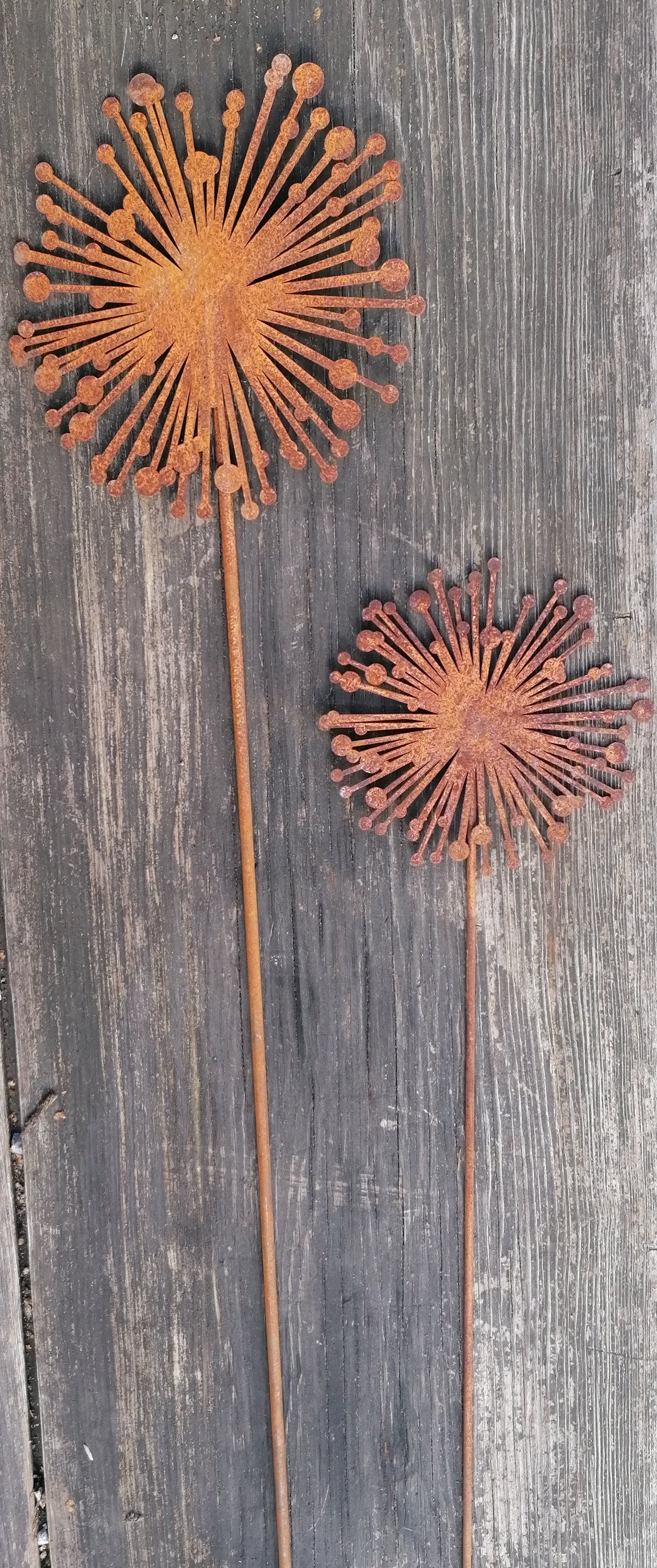 NEU !! 2er Set Stecker Zwiebelblüte / Allium / Lauch 57 + 90 cm lang aus Metall in Edelrost Gartenstecker Dekoration Herbst Frühling Kräuter Rankhilfe