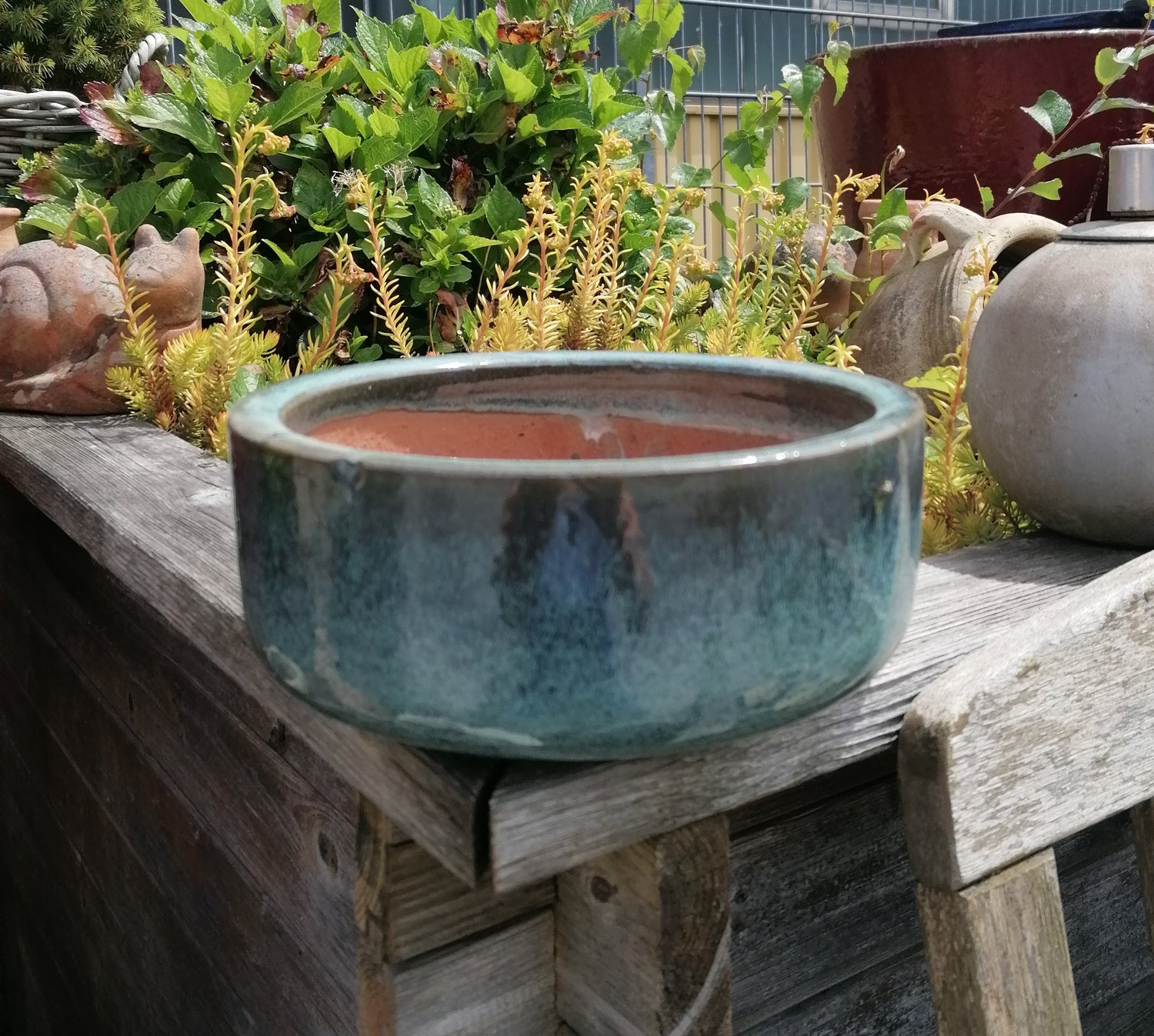 - Schönes 3er Set Pflanzschalen aus winterfesten Steinzeug grüngrau/moosgrün glasiert