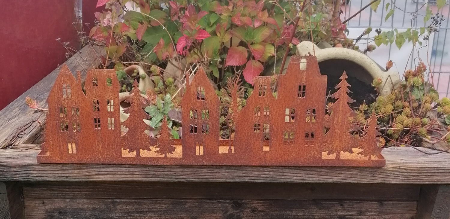 NEU !! Dorflandschaft ca. 47 cm breit aus Metall in Edelrost Weihnachten Deko Tannenbaum Weihnachtsbaum Teelichthalter Kerzenständer Weihnachtsdeko