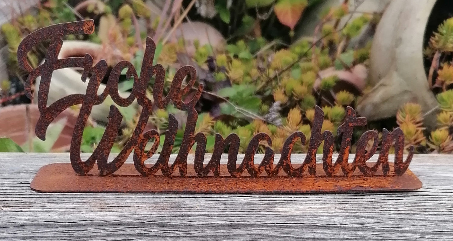 NEU !! Kleines Schild "Frohe Weihnachten " auf Platte ca. 20 cm breit aus Metall in Edelrost Weihnachten Deko Weihnachtsdeko