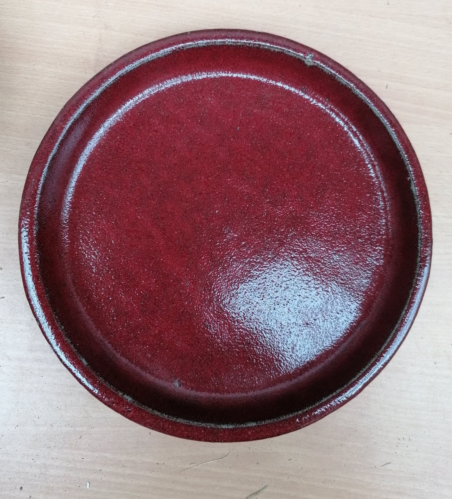 - Schöner winterfester Unterteller aus dunkelrot / oxblood glasierten Steinzeug